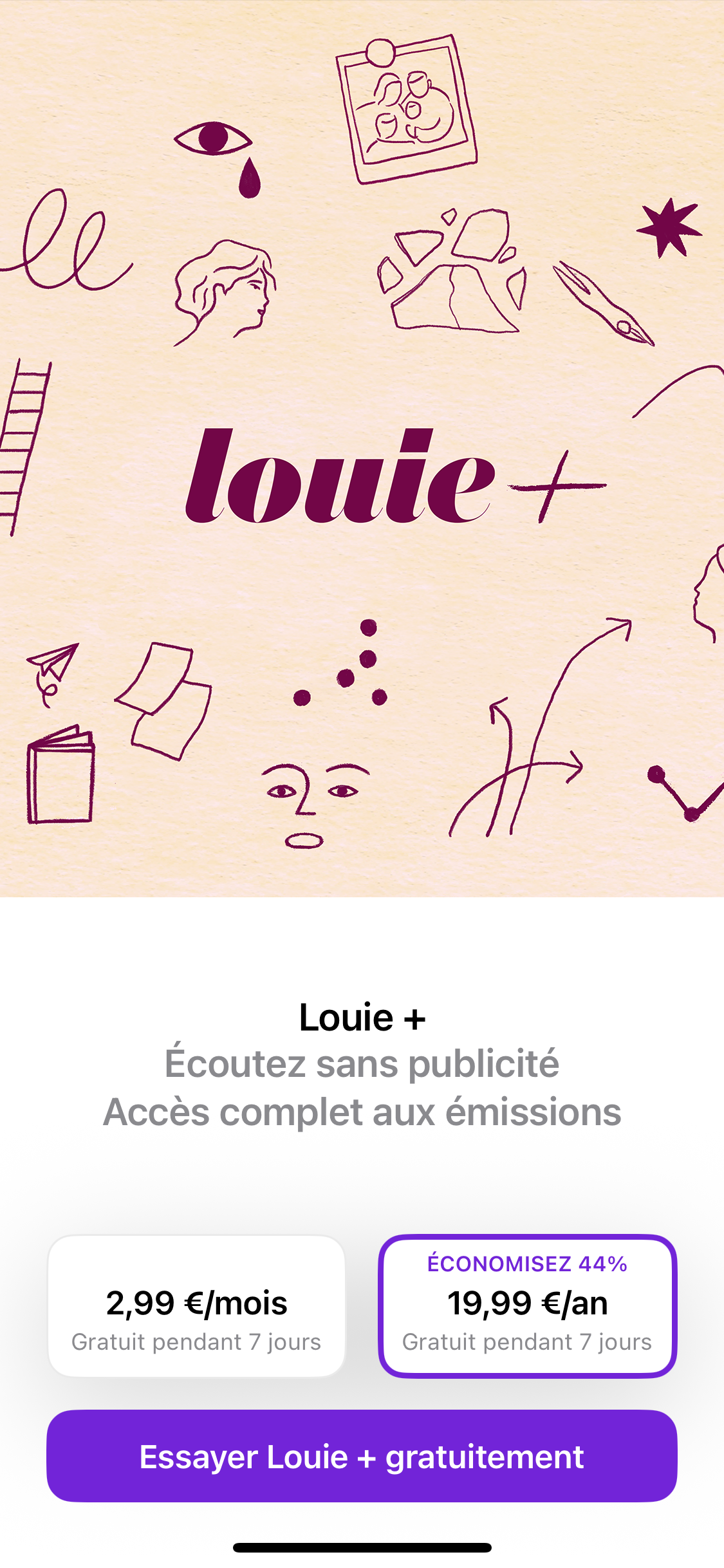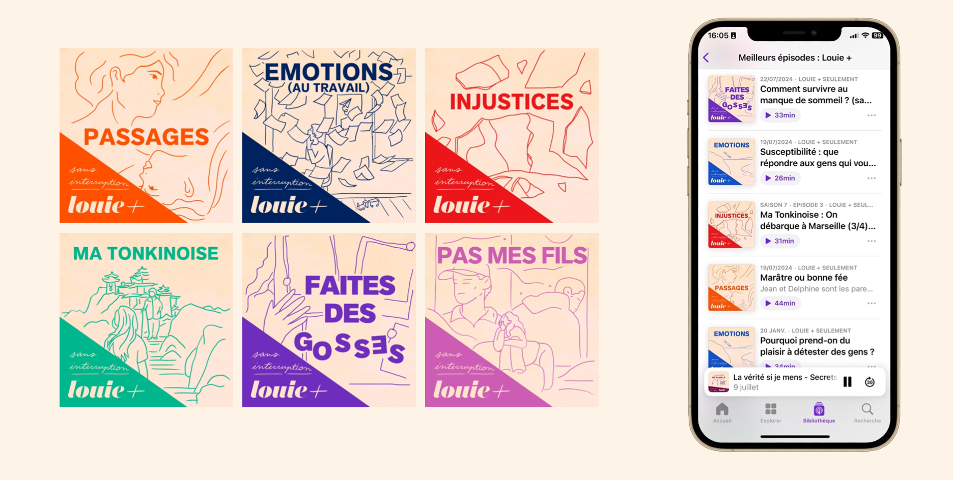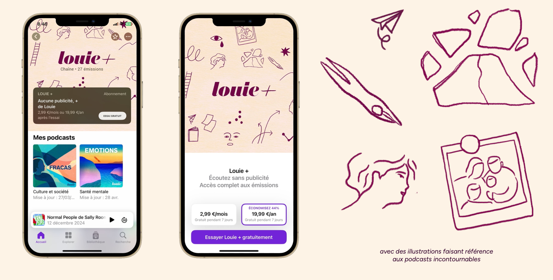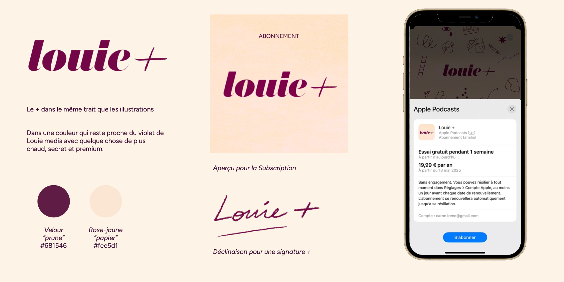 Création de l’identité visuelle de Louie+, l’abonnement premium de Louie Media sur Apple Podcasts.