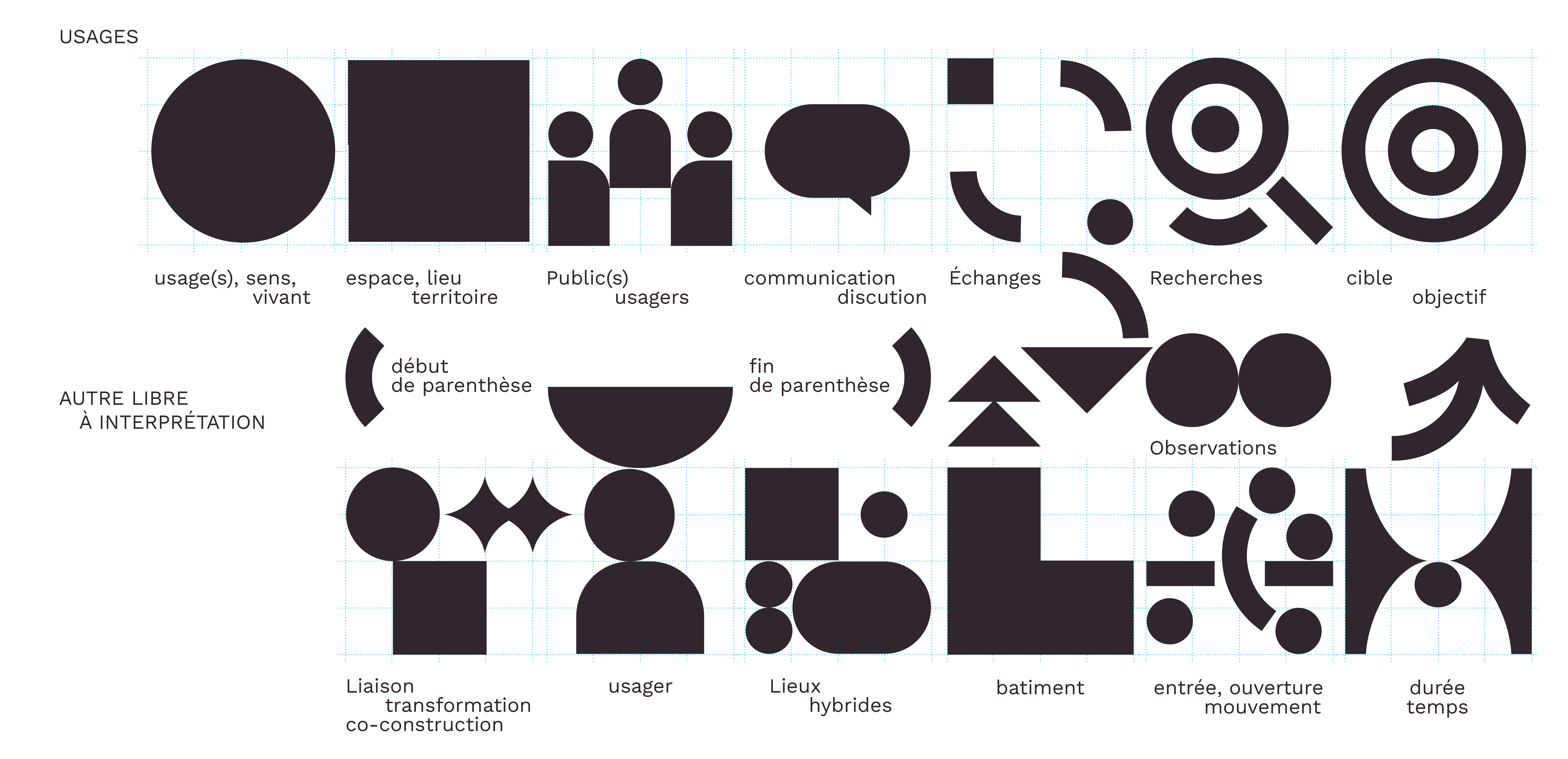Le système graphique repose sur des formes simples et symboliques, capables de traduire la co-construction, le mouvement et la vie d’un lieu.